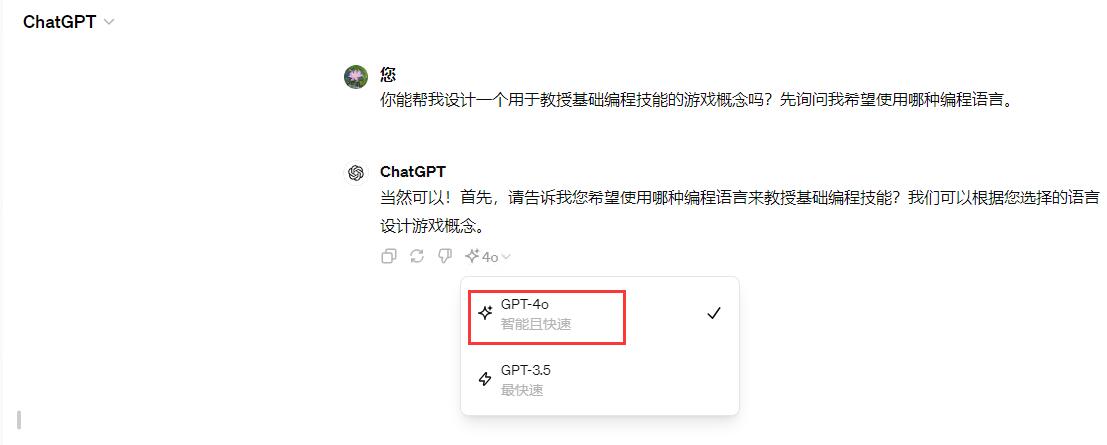 根据对话,在结尾最后一行的最右边图标,上面显示模型,4o是GPT‑4o