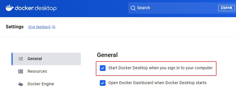 7、docker开机设置自启动,extensions→settings→general→勾选【√】Start Docker Desktop when you sign in to your computer