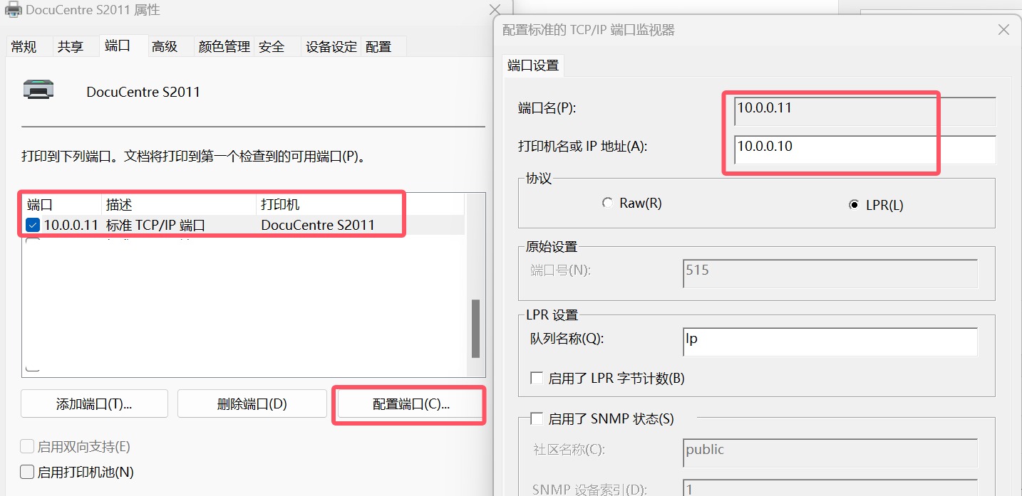 控制面板→打印机→S2011→打印机属性→端口→标准TCP/IP端口→配置端口→IP地址进行更改即可(可以通过S2011打印机驱动安装包打开查询获取IP地址)