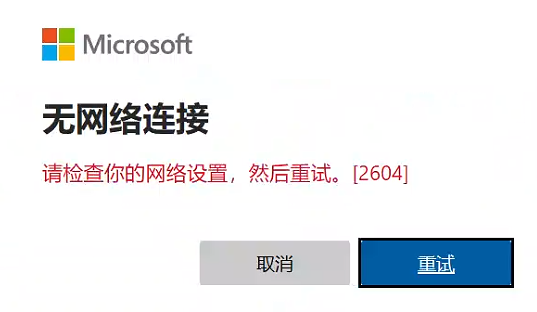 office365登陆账户提示无网络连接,请检查你的网络设置,然后重试。[2604]的错误,解决方法如下: