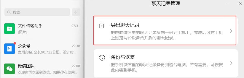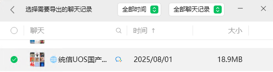 微信电脑端→左下角【聊天记录管理】→【导出聊天记录】→【仅导出指定聊天记录】可以指定【聊天记录时间区间比如20250801-20250802】,勾选需要导出的聊天用户或群→开始导出提示【导出已完成】即可完成导出,手机上会提示【迁移已完成】