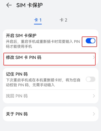 mate60pro+手机【设置】【安全】【SIM卡保护】【开启SIM卡保护】【修改SIM卡PIN码,一般默认密码是1234,修改为4-8位密码】