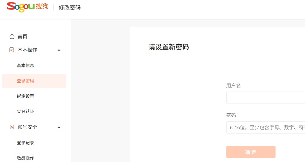 找到搜狗通行证地址:https://account.sogou.com/home/login,使用邮箱账号进行登陆,进入操作界面:【绑定设置】→【手机号或QQ 必须满足任一条件进行绑定】,绑定成功后,【登陆密码】→【请设置新密码】输入新密码完成修改。