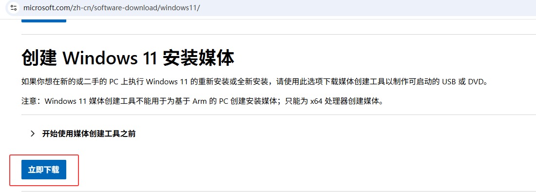 1、首先去微软官网:https://www.microsoft.com/zh-cn/software-download/windows11/,创建Windows 11安装媒体点击【立即下载】,下载MediaCreationTool软件