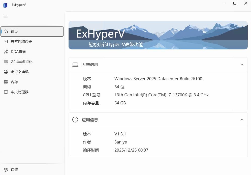 接下来操作,先下载ExHyperV,首次打开还需要下载.net组件,安装组件后以管理员模式运行ExHyperV,开始配置实现宿主机和Hyper-V平台下多个虚拟机共享独立显卡,具体操作: