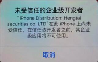如安装后出现以下ios提示:未受信任的企业级开发者
