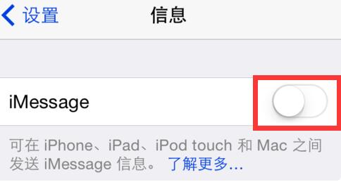 3.iMessage信息及如何切换到短信:点击【iMessage】右侧的开关关闭 iMessage ,但是不会影响我们手机正常的信息收发。