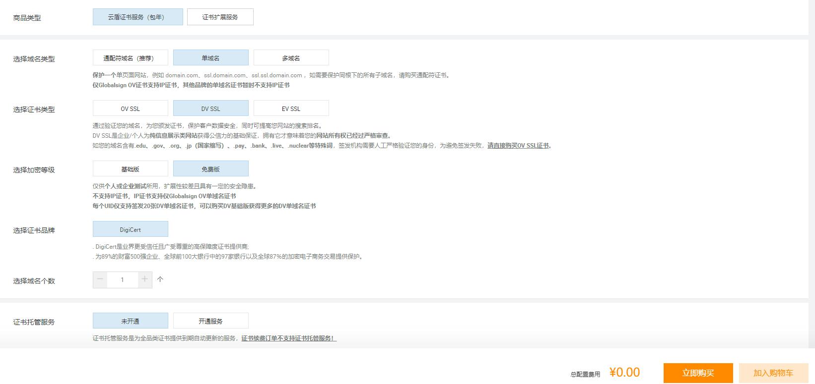 1.去阿里云页面免费申请购买SSL证书,官网地址:https://www.aliyun.com/product/cas