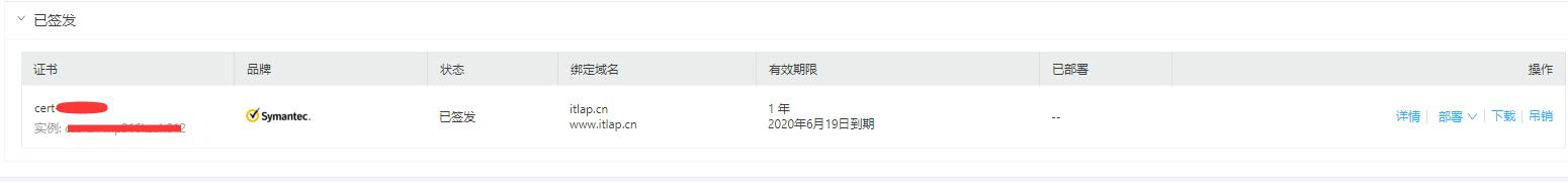3.成功后,在已签发栏会看到成功的证书信息,是赛门铁克签发的,选择操作-下载-服务器类型选择Nginx-进行下载即可。