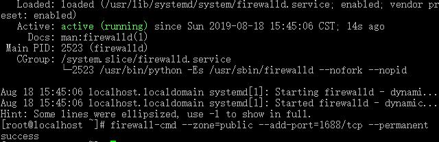 因为防火墙开启状态,需要开放1688执行命令如下:
