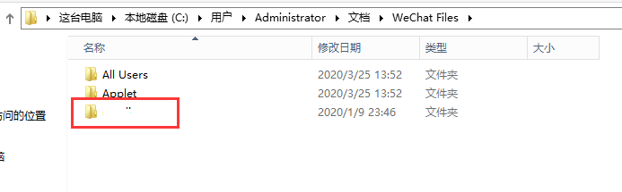 1.首先根据微信上聊天记录文件找到存储路径,比如路径地址:C:\Users\Administrator\Documents\WeChat Files\kaixinit\FileStorage\File\2020-03,说明微信号kaixinit在C:\Users\Administrator\Documents\WeChat Files\目录下,如下图: