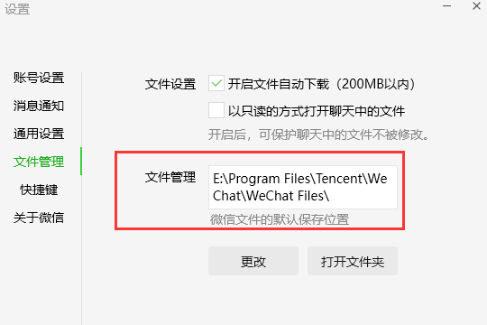 微信更改文件保存路径设置: