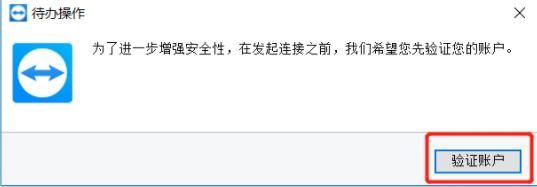 在登陆TeamView电脑端,远程的计算机添加teamviwer ID和密码,点击远程控制,弹出提示:为了进一步增强安全性,在发起连接之前,我们希望您先验证您的账户。