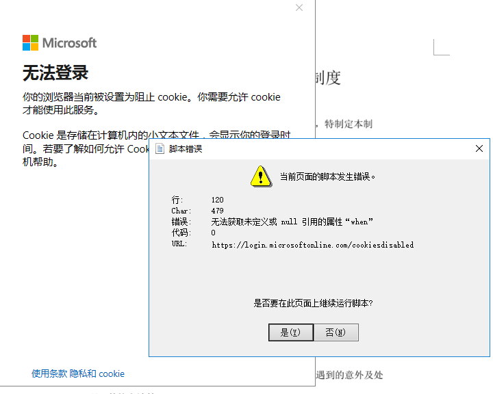 老版的office 365默认在windows 2016服务器系统使用账户和密码登陆显示如下图,无法登陆,你的浏览器当前被设置为阻止cookie,实际打开IE浏览器internet选项时,显示cookie都是接受设置状态的,解决方法: