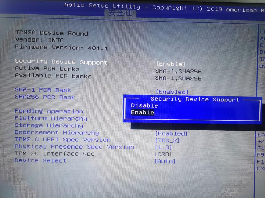 开机按delete进入bios下,右边的ctrl+shift加左边的alt+f2同时按下(方向搞反打开不了的),开启bios的隐藏菜单,在安全性下面的Trusted Conputing里面的Security Device Support改为Enable,F10保存重启检测即可符合Windows 11安装要求。