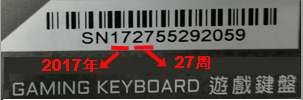 请参考您键盘产品背面,就可找到序号贴纸 |