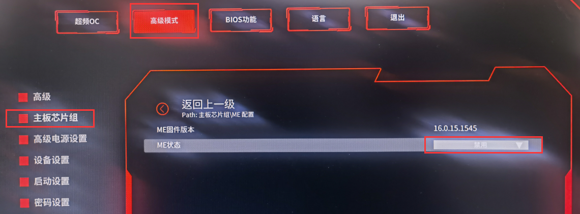 2.刷BIOS之前需要进入BIOS里关闭ME(在BIOS界面→高级模式→主板芯片组→ME状态设置为禁用,F10保存重启),保存之后开机按F11进入引导设备菜单,选择UEFI模式进入shell。
