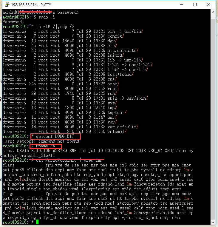 Linux DS216 3.10.105 #23739 SMP Tue Jul 10 00:16:03 CST 2018 x86_64 GNU/Linux sy nology_braswell_216+II