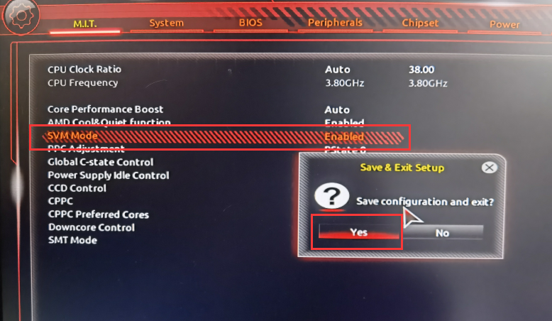 进入Bios,选择M.I.T.>Advanced Frequency Settings>Advanced CPU Settings>SVM Mode把disabled更改为enabled>F10选择Yes保存重启即可。