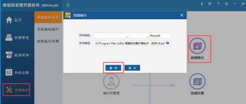 系统维护→数据备份→备份,备份文件是.bak文件,例如备份文件为:123456Key.bak,备份文件一般是在开票软件目录下