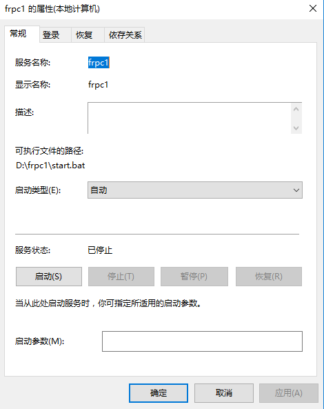 sc create frpc1 binPath= D:\frpc1\start.bat start= auto