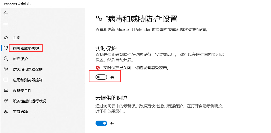 - 如果”篡改保护”已打开,则需要关闭”篡改保护”,然后才能关闭实时保护。
