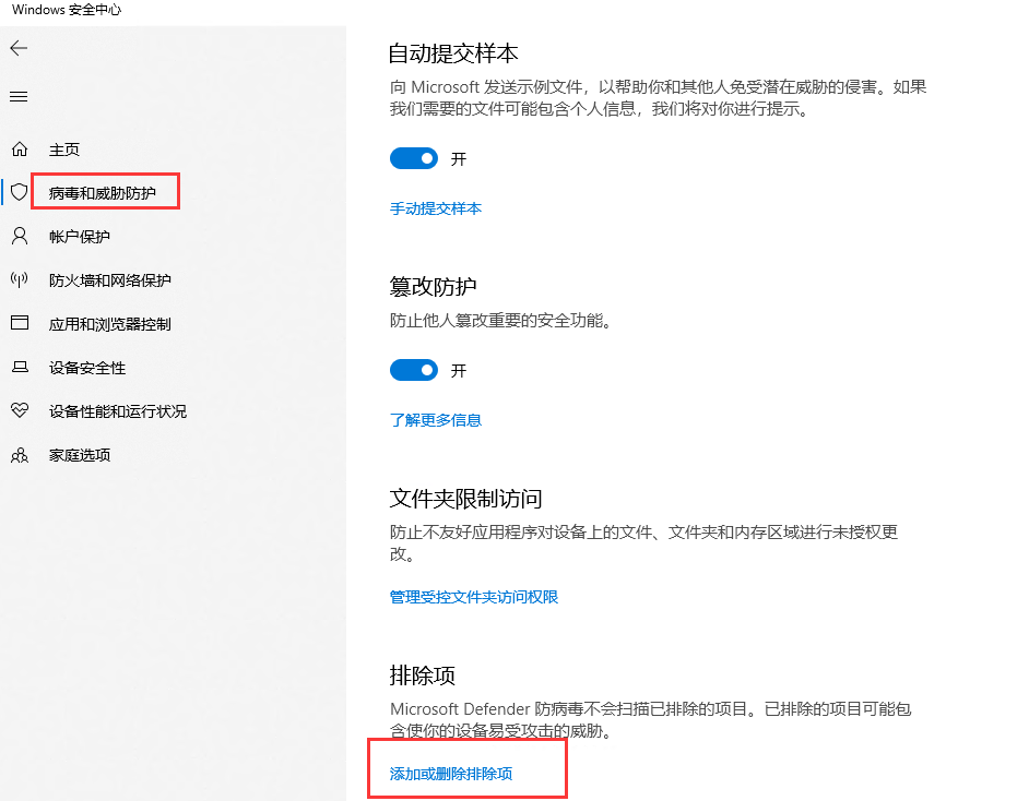 Windows 安全中心→病毒和威胁防护→下拉找到:排除项的【添加或删除排除项】→添加排除项的【文件夹】→找到开票软件安装路径例如:D:\Program Files (x86)目录下文件夹:【增值税发票开票软件(税务UKey版)】→选择文件夹→即可完成,电脑重启后打开软件不再提示”开票软件不完整”被误杀。