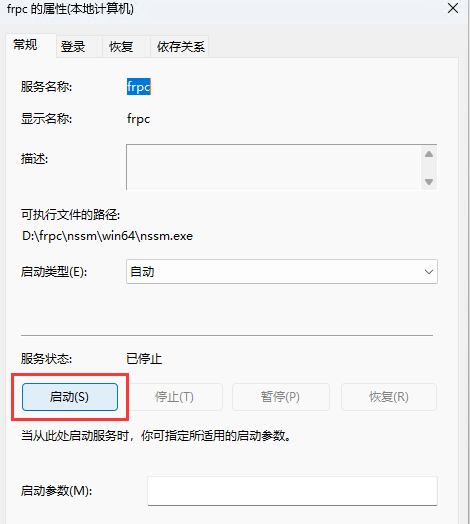 D:\frpc\nssm\win64\nssm.exe start frpc