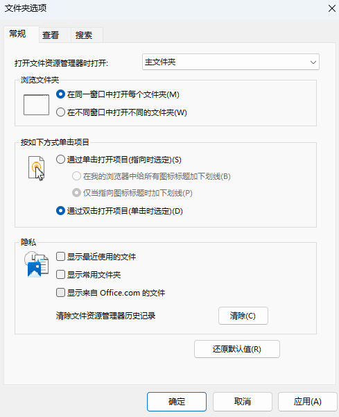 Windows 11开始菜单取消推荐的项目和消除文件管理器历史记录的设置方法 开心电脑网 • 2024年1月17日 • 网络维护 • 阅读 4080 开始→设置→个性化→开始→在开始、跳转列表和文件管理器中显示最近打开的项目→关闭即可。文件夹选项→隐私→去掉勾选√ 显示最近使用的文件和显示常用文件夹 原创文章,作者:开心电脑网,如若转载,请注明出处。 赞 (0) 0 生成海报 关于作者 开心电脑网 办公电脑技术分享平台 爱普生EPSON打印机L380喷墨一体机废墨计数清零软件 上一篇 2024年1月16日 Windows 2016系统使用frpc被Windows Defender误杀解决办法 下一篇 2024年1月18日 相关推荐 网络维护 「微软官方」从 USB 设备启动 Surface 2020年1月29日 8.9K 网络维护 微软发放内测用户5周年纪念版壁纸(附官方地址) 2019年10月19日 6.0K 网络维护 开票软件税务UKey版数据备份与恢复教程 2023年3月27日 10.2K 网络维护 Adobe Flash Player分类下载中心,支持windows、MAC OS、Linux系统 2021年6月23日 5.3K 网络维护 适用于 Windows 10 神州网信政府版 V2020-L的补丁CKB2020040802 2020年4月25日 5.8K 发表回复 您的邮箱地址不会被公开。 必填项已用 * 标注昵称: 邮箱: 网址: 记住昵称、邮箱和网址,下次评论免输入 提交 Δ
