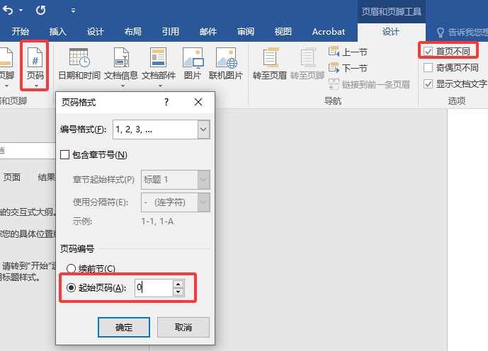 隐藏首页数字:双击页脚,在工具栏勾选 “首页不同”。首页的页码就会消失。
