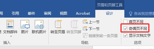 页脚处,双击进入编辑,设计→勾选 奇偶数不同