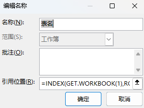 2、名称管理器→新建→编辑名称→名称:表名→引用位置输入公式后,确定
