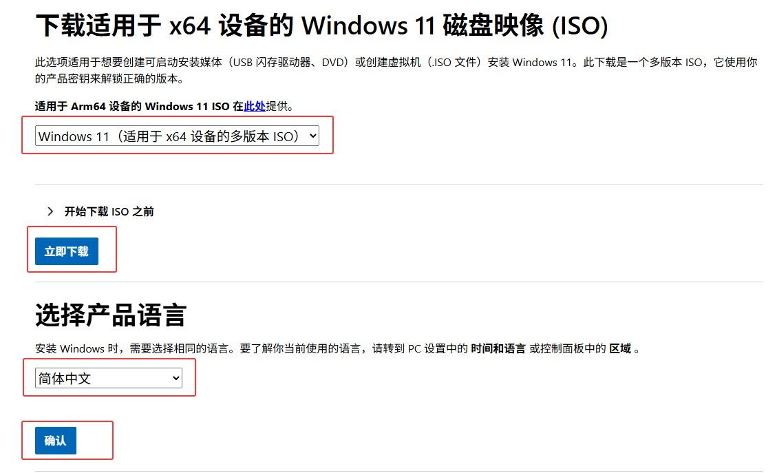 选择下载【Windows 11(适用于 x64 设备的多版本 ISO)】→【立即下载】后开始验证请求生成下一步: