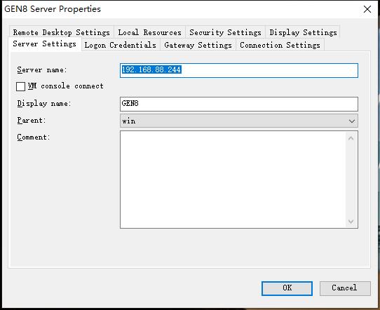 server settings -server name 输入服务器地址如192.168.88.244,display name 设置左侧栏显示的名称可以任一自定义名称如:GEN8,OK保存即可。