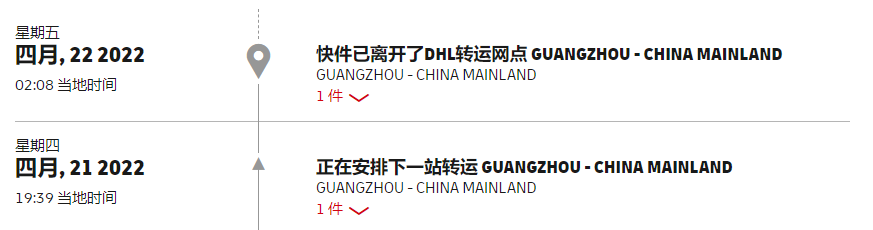 4月21日显示:同一订单的两个快单号,向DHL反馈其中一个快单已经派送处理,未反馈的一个快单显示未派送状态