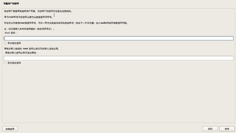 Root密码:保持默认(建议留空,便于执行sudo,如有需求自行设置)