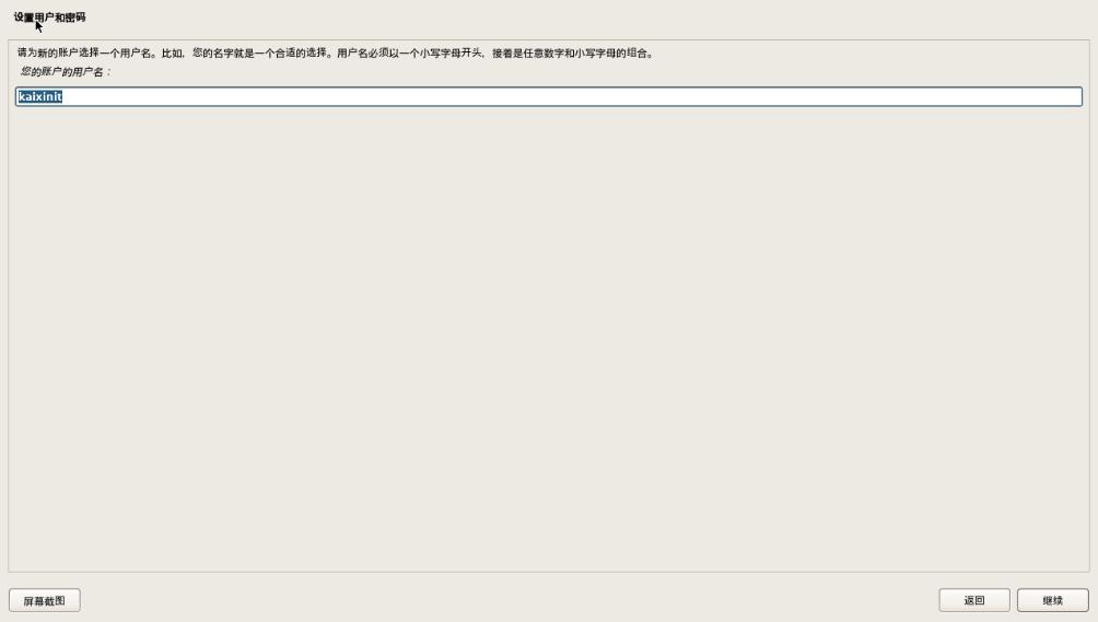 请输入新用户的全名:例如输入kaixinit,再次确认kaixinit继续