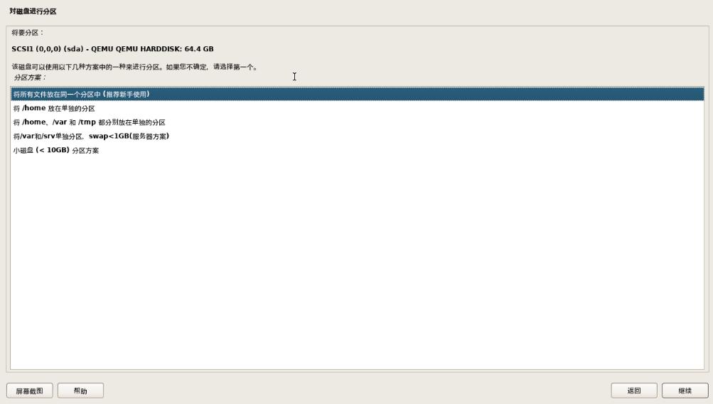 分区方案:将所有文件放在同一分区中(推荐新手使用)【默认】