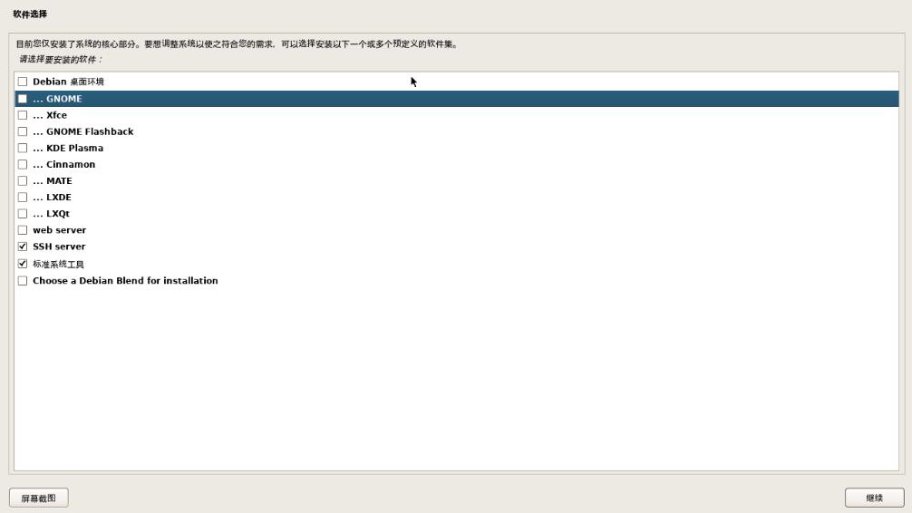 取消勾选顺序1和2 Debian 桌面环境和___GNOME