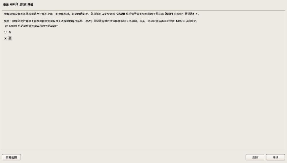 将grub启动引导器安装至您的主驱动器:是