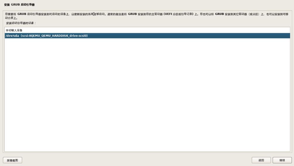 安装启动引导器的设备:/dev/sda 开头的磁盘 一般在第二项 ,警告:(不要选择第一项:手动输入设备)9.结束安装进程:
