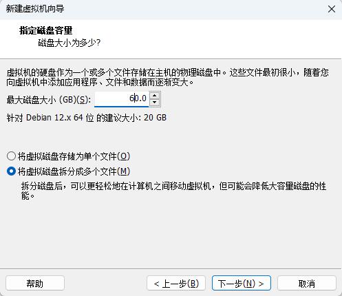 指定磁盘容量:【最大磁盘大小】例如:60GB