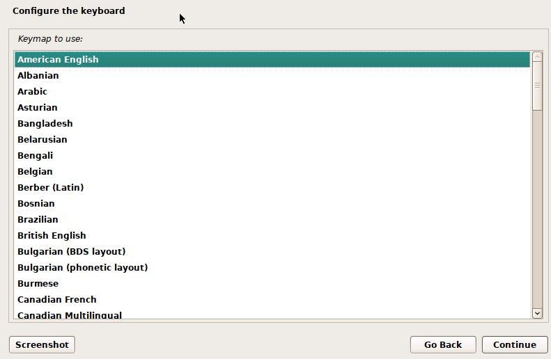 configure the keyboard配置键盘:american English