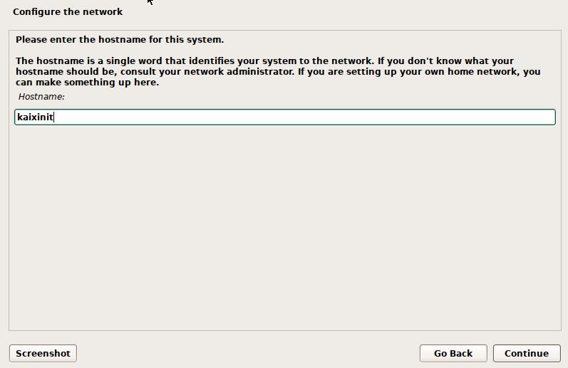 configure the network主机名:例如kaixinit