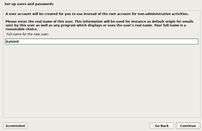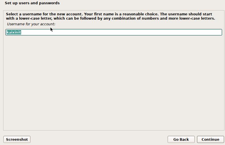 fluu name for the new user新用户名:例如kaixinit进行确定