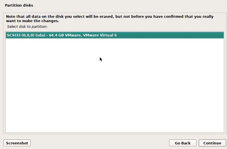 select disk to partition对磁盘分区:选择默认的磁盘