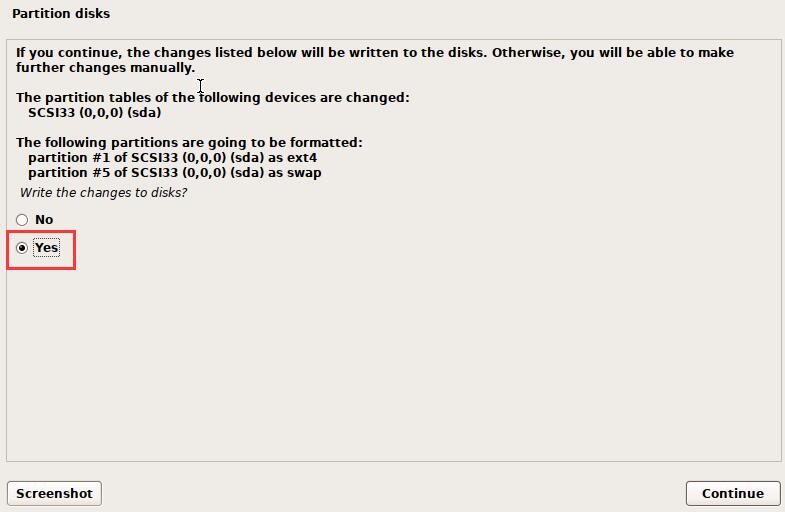 write the changes to disks将改动写入磁盘 :选择 yes