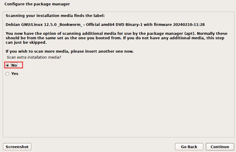 sacn extra installation medis扫描额外的安装介质:选择 no