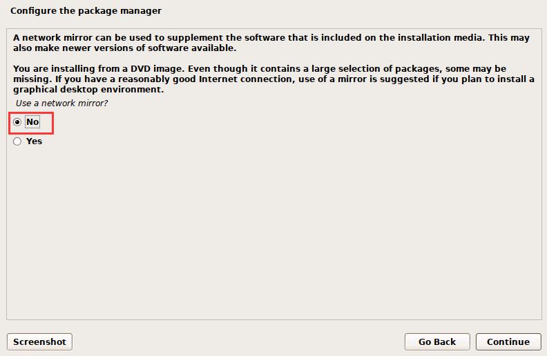 ues a network mirror使用网络镜像站点吗: 选择 no