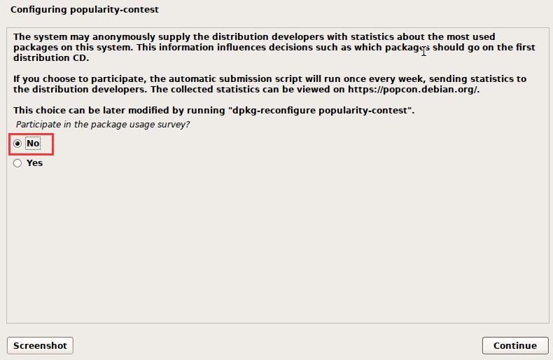 participate in the package usage survey您是否参加软件包流行度调查吗: 选择 no